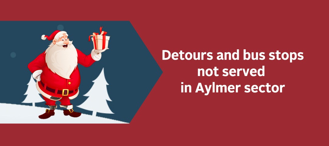 November 24, 2025Nov. 24 - Chemin d'Aylmer/Allen (#1368) and Chemin d'Aylmer/Augusta (#1388) stops not serviced until further notice
