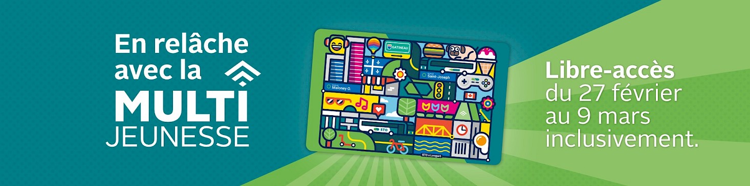 En partenariat avec la Ville de Gatineau, nous sommes fiers d’offrir la carte Multi Jeunesse à tous les élèves du secondaire de 12 à 17 ans qui habitent et/ou fréquentent une école à Gatineau.